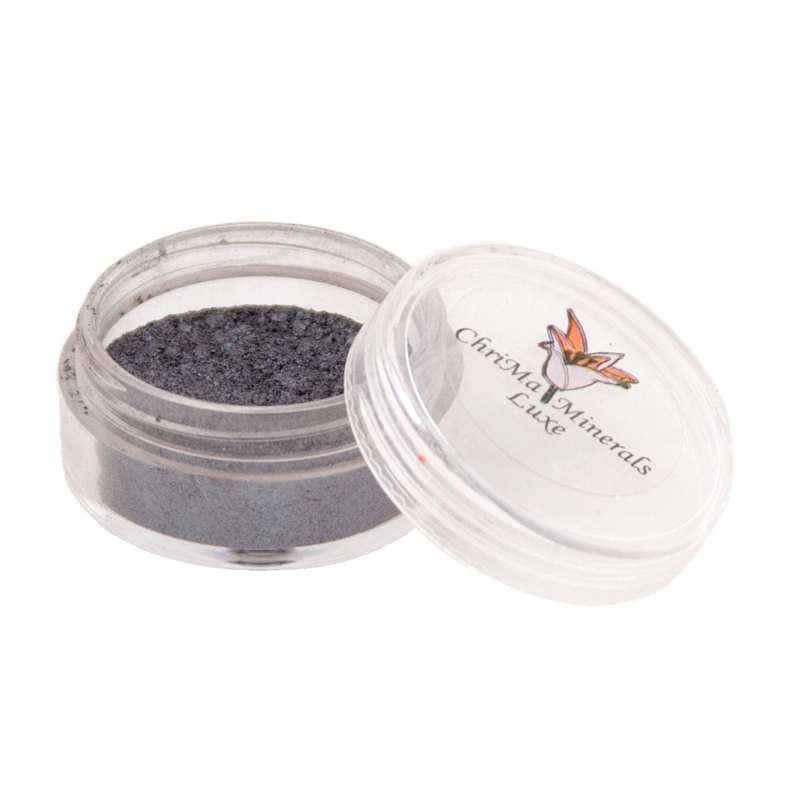 Glänzender, silberfarbener Mineralpuder mit schwarzem Unterton