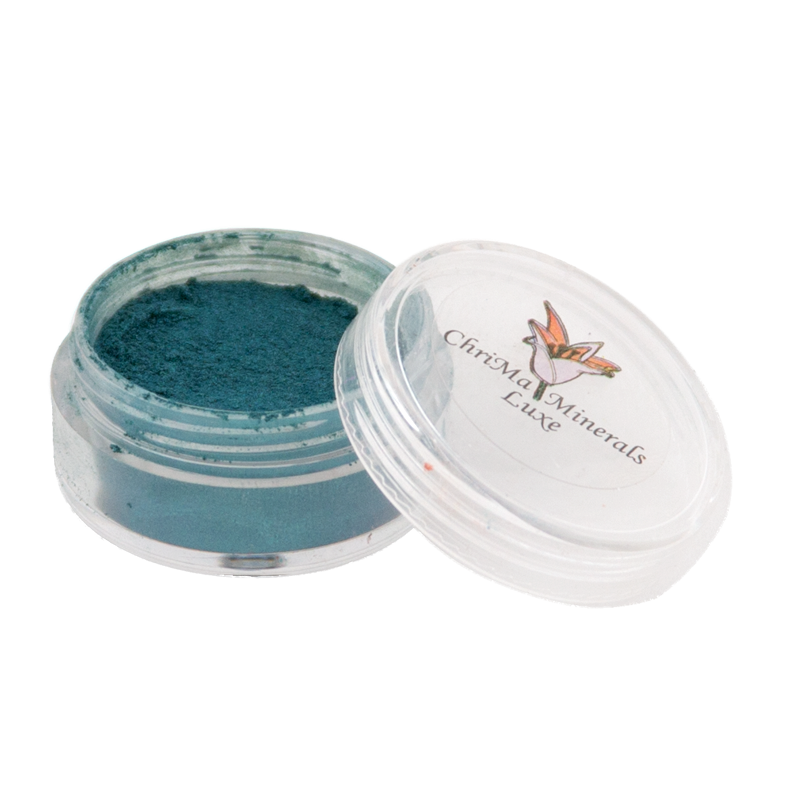 Glänzender, elegant grün-blauer Mineralpuder, wie das Meereswasser in der Südsee